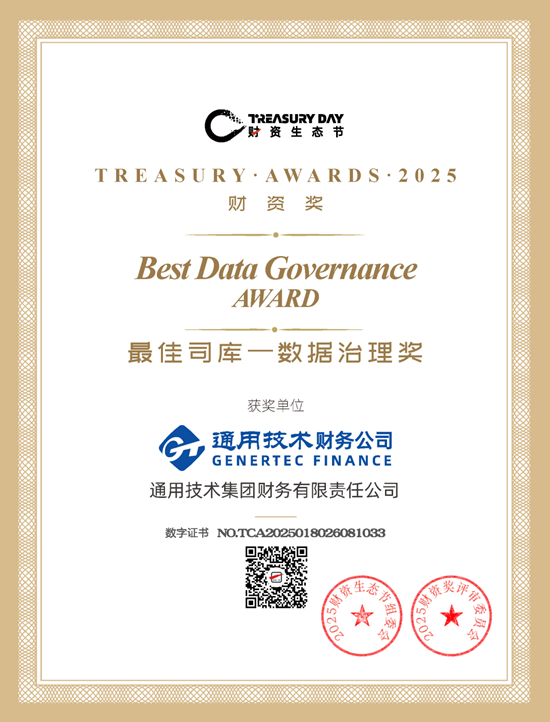 9月25日,第六届财资生态节暨2025财资年会成功举办。作为财资管理领域的年度权威盛会,“财资奖”旨在表彰推动行业数字化转型、提升财资运营效率的标杆企业与创新实践。通用技术财务公司凭借卓有成效的司库数据治理创新实践成果,荣获“最佳司库——数据治理奖”。