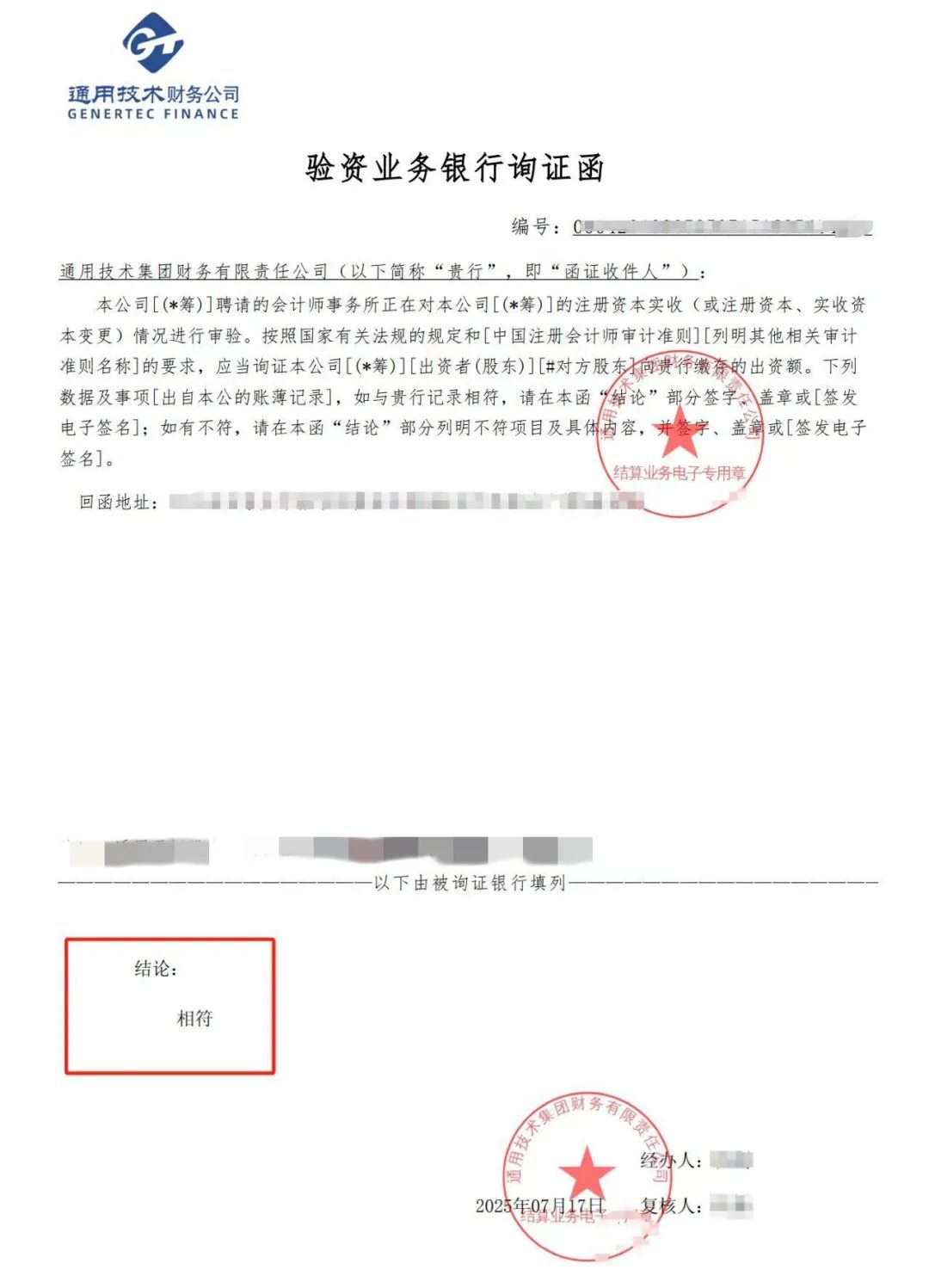 首单验资回函高效落地|通用技术财务公司开启数字化验资服务新时代